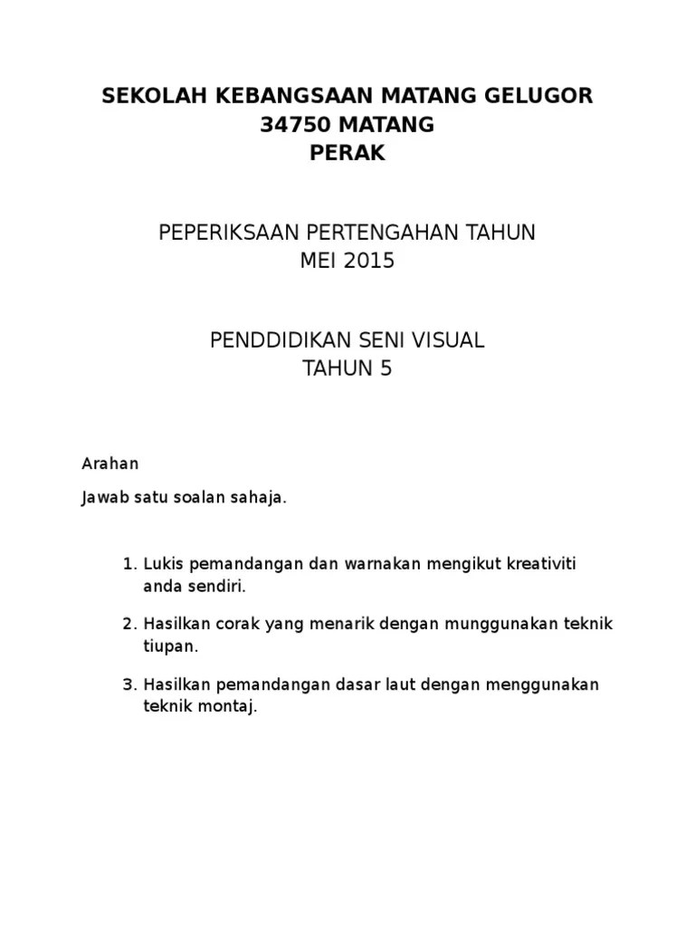 1 lukisan 2 catan 3 kolaj 4 montaj 5 cetakan 6 resis 7 gosokan 8 stensilan 9 percikan 10 gurisan 11. Guru menunjukkan lukisan "adikku" dengan teknik gosokan dan kolaj. Air, laut, bawah air, pemandangan laut. Lihat juga kreasi seni unik orang jepang di sawah di link ini. Penilaian p&p proses penghasilan karya sepanjang aktiviti membuat lukisan. Guru memberi tajuk " hidupan dasar laut menggabungkan teknik montaj dan cetakan.
